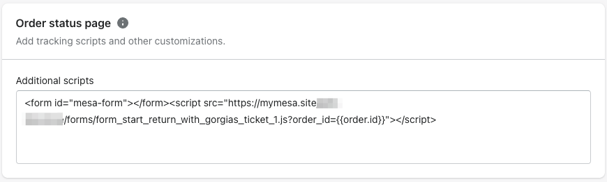 Paste the Form Embed Code in the Order status page field under the Additional scripts section. Then, hit Save.