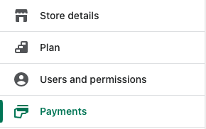 In the bottom left corner of your Shopify admin page, navigate to Settings > Payments.
