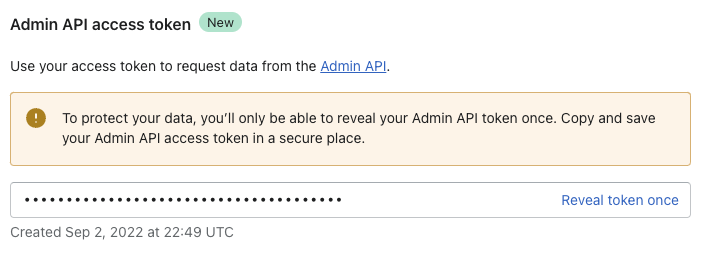 On the next page, click the Reveal token once text next to your Admin API access token.