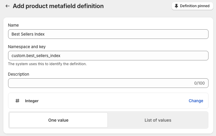 In the Shopify Admin, you will need to create a Best Sellers Product Metafield.