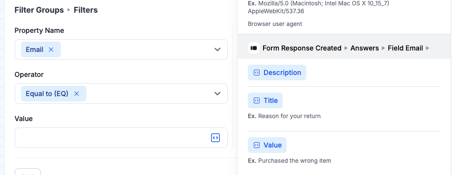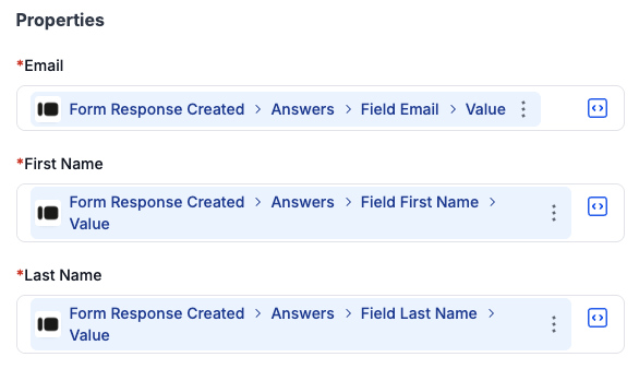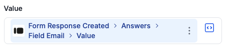 Select the Value variable for the Email field from the Form Response Created trigger.