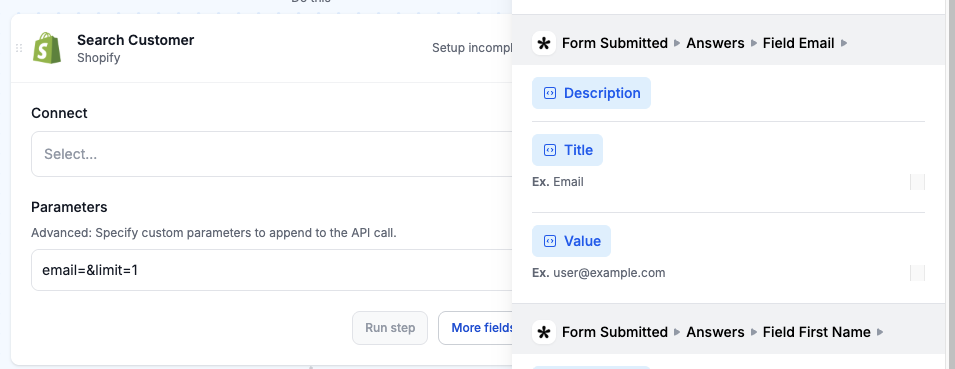 Expand the Manual run section within the trigger and select a record. Then, click Run Step to pull data from your form.