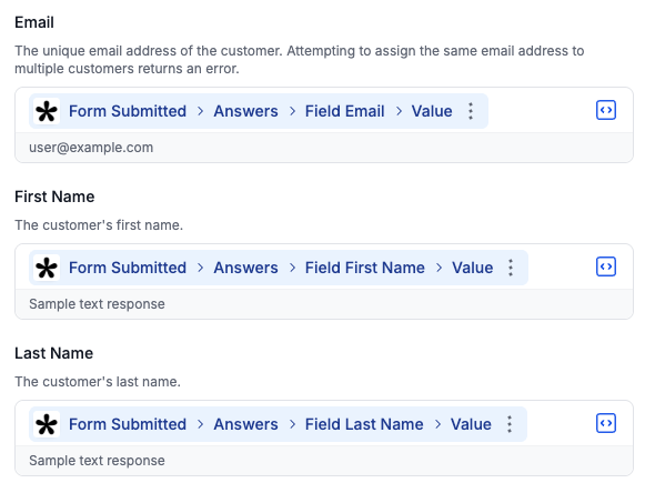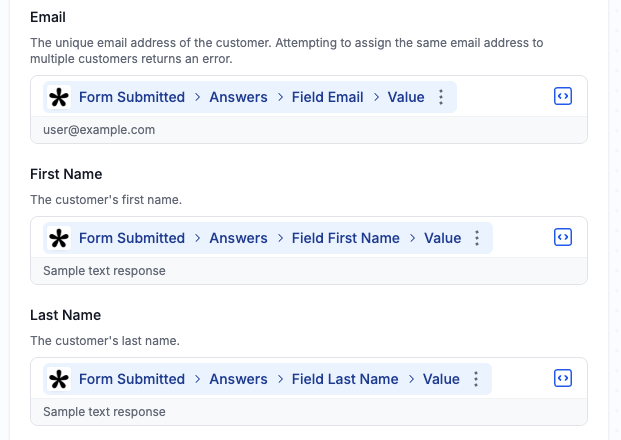 Convert Tally form responses into Shopify customer profiles without lifting a finger. When someone fills out your Tally form, MESA automatically creates a new customer record in Shopify or updates an existing one with fresh information. Perfect for lead capture forms, newsletter signups, or customer feedback surveys that need to flow directly into your Shopify store's customer database.
