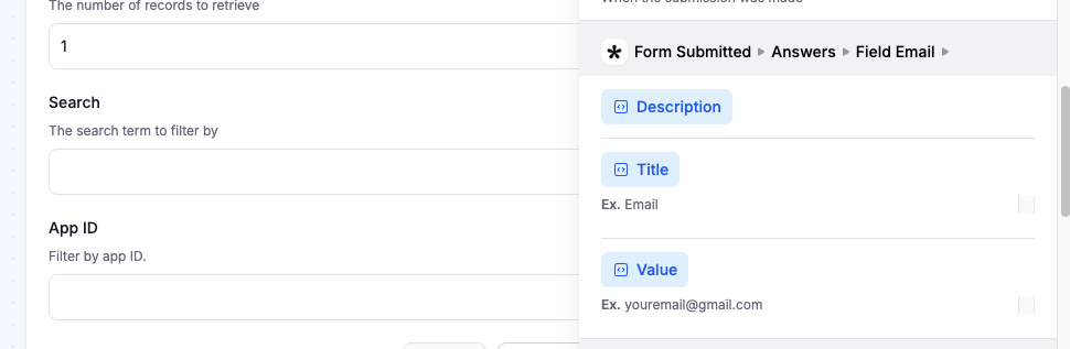 In the Form ID field of the Tally Form Submitted trigger, select your Tally form from the drop-down or enter the Form ID for MESA to monitor.
