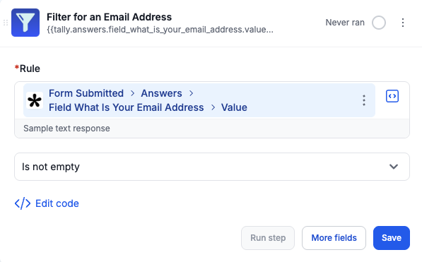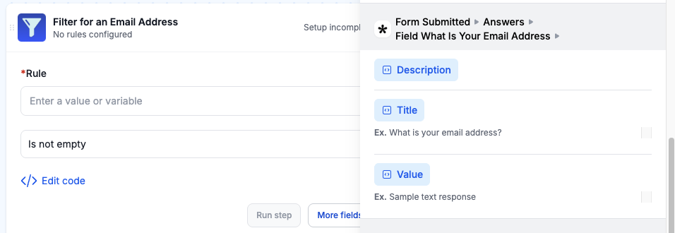 Find the step,Check if Email in Tally Form Matches an Email in Klaviyo.